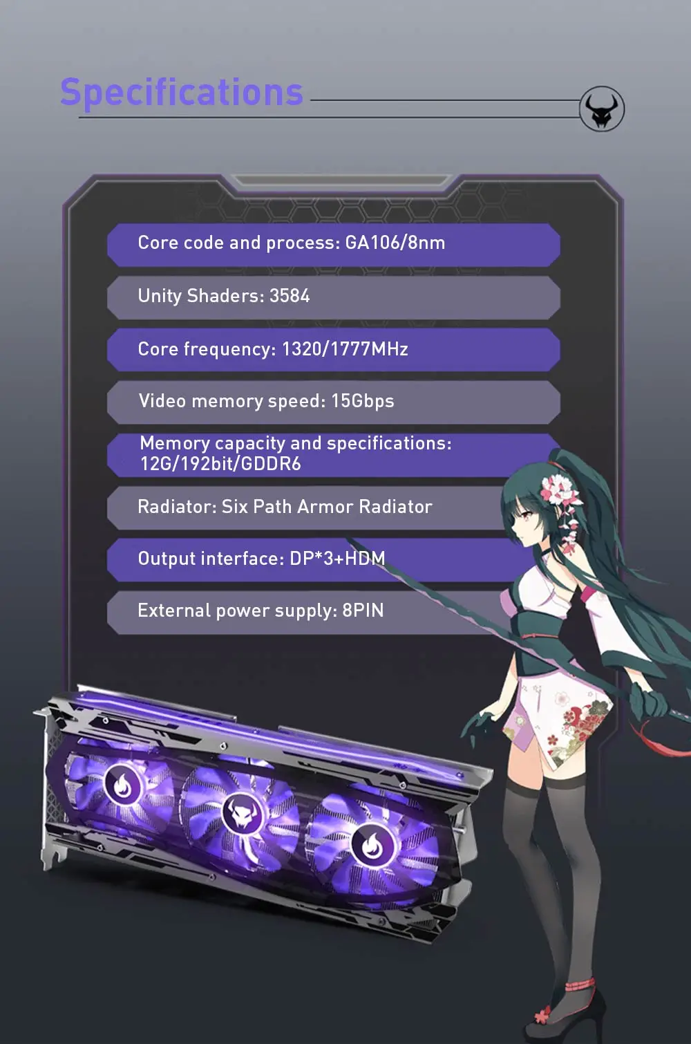 YESTON New Graphic Card GDDR6 NVIDIA Rtx 3060 12G Gaming GPU Video Cards Rtx 3060TI Rtx3050 Rtx3070 Rtx3080 Placa De Vídeo