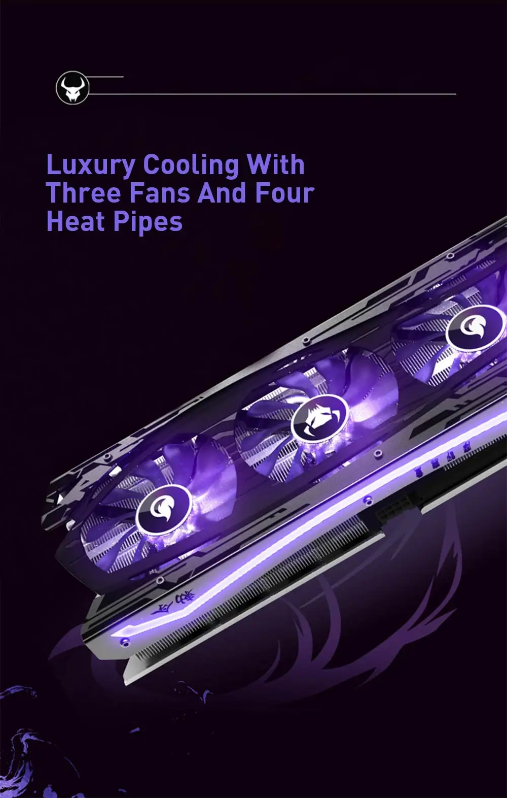 3. Three fans + four heat pipes, strong heat dissipation performance